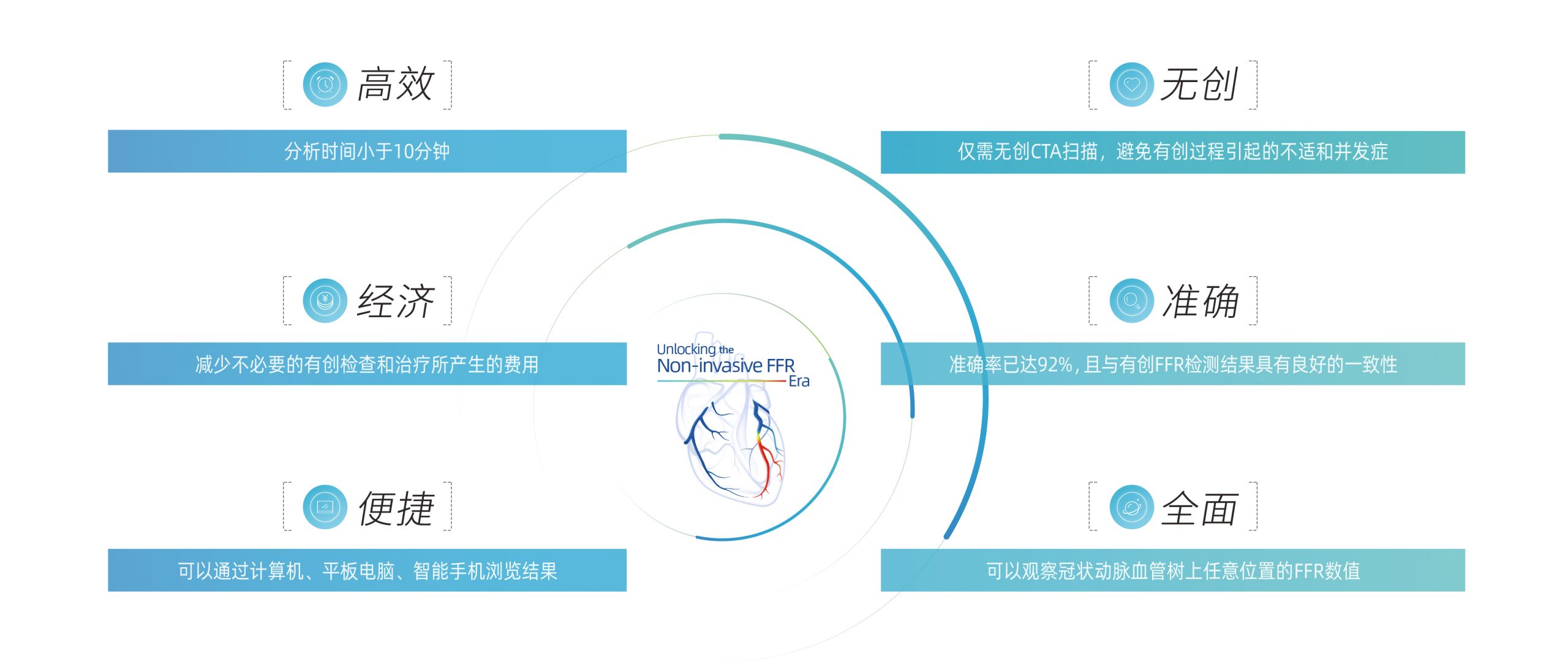 深脉分数(DVFFR)是全球首款采用深度学习技术,进行冠状动脉生理功能评估的产品。利用冠状动脉计算机断层扫描造影影像(Computed Tomography Angiography,CTA)进行无创FFR分析,能够快速评估冠脉狭窄是否会导致心肌缺血。
